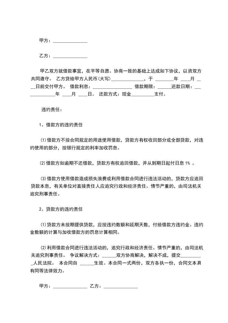 1.乙方如因本身责任不按合同规定支付给甲方欠款及利息的,乙方应负违约全部责任。按照欠款本金的双倍给予甲方赔偿(即违约后,偿付甲方贰万肆仟元人民币)。