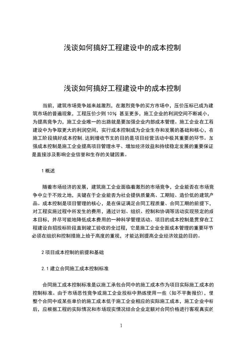 浅谈如何搞好工程建设中的成本控制