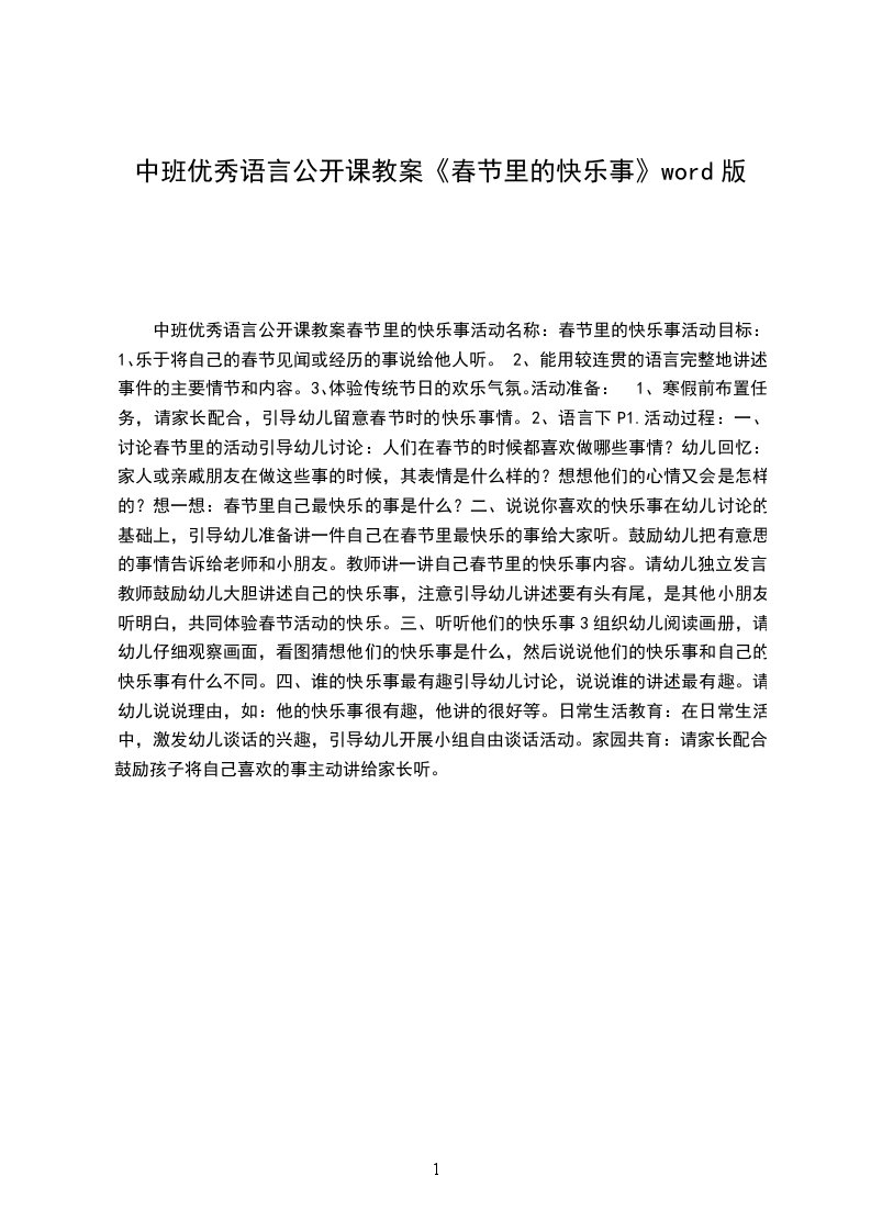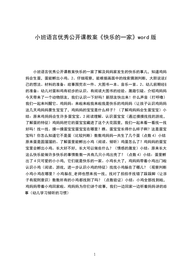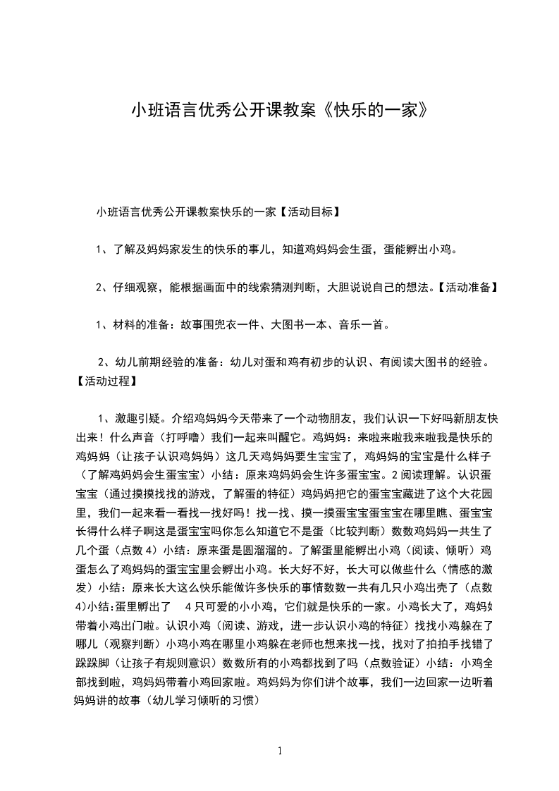 小班语言优秀公开课教案快乐的一家【活动目标】
