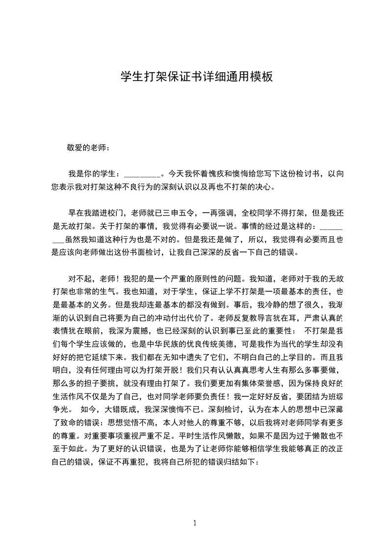 我是_________-_________班的_________-_________,我怀着十二万分的愧疚以及十二万分的懊悔写下这份检讨书,以向您表示我对打架这种恶劣行为的深痛恶绝及打死也不再_____的决心。回想起昨天发生的打架事情,让我后悔不已。作为一名在校学生,打架斗殴实属不对。作为一名学生,就要有学生的样子,团结,友爱,是我们的本分。冲动不能解决任何事情,相反会弄巧成拙,破坏同学关系,失去老师信任。我对我的做法感到愧疚。在此,写此书以示悔过。