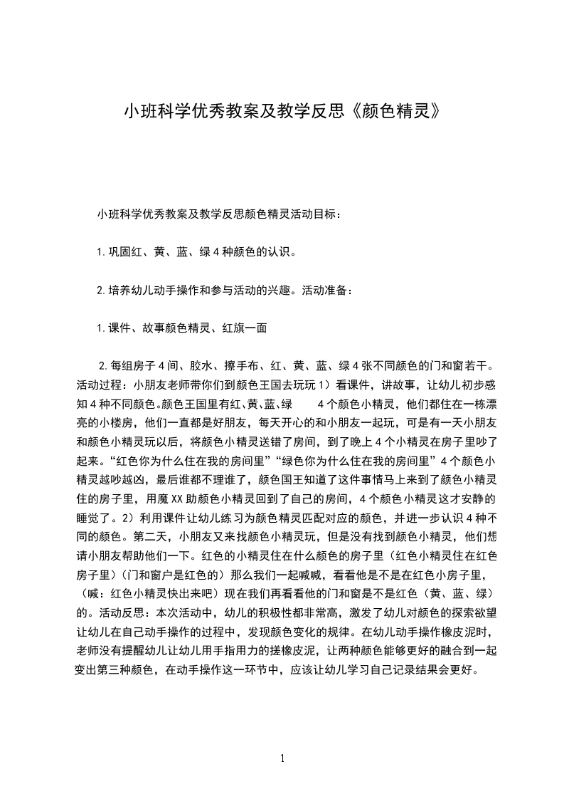 小班科学优秀教案及教学反思颜色精灵活动目标: