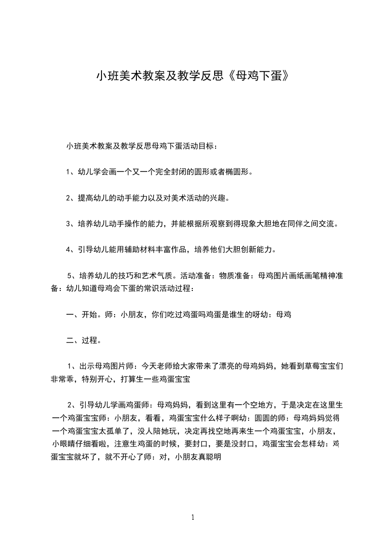 5、培养幼儿的技巧和艺术气质。活动准备:物质准备:母鸡图片画纸画笔精神准备:幼儿知道母鸡会下蛋的常识活动过程:
