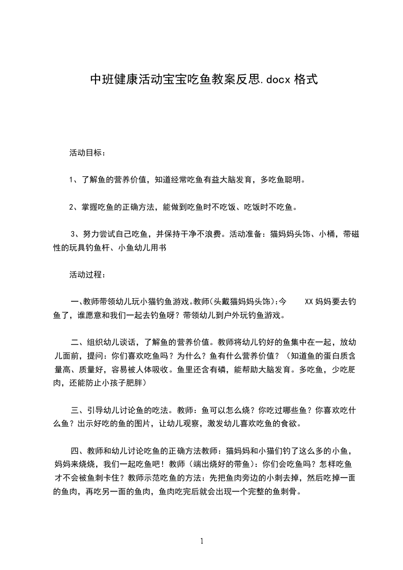 中班健康教案吃鱼活动目标: