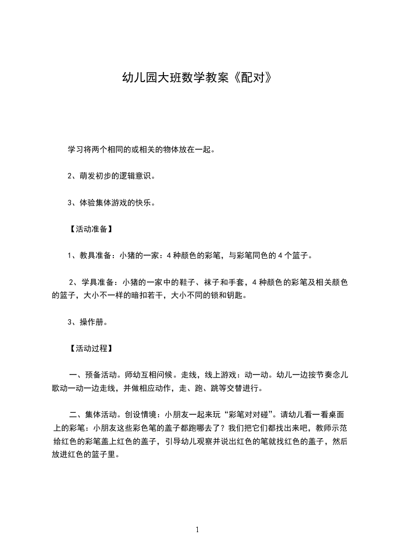 二、集体活动。创设情境:小朋友一起来玩“彩笔对对碰”。请幼儿看一看桌面上的彩笔:小朋友这些彩色笔的盖子都跑哪去了?我们把它们都找出来吧,教师示范:给红色的彩笔盖上红色的盖子,引导幼儿观察并说出红色的笔就找红色的盖子,然后放进红色的篮子里。