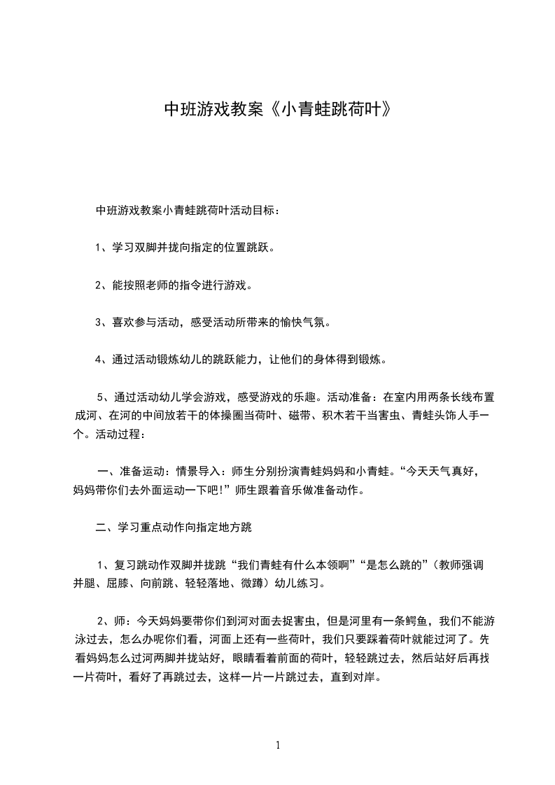 中班游戏教案小青蛙跳荷叶活动目标: