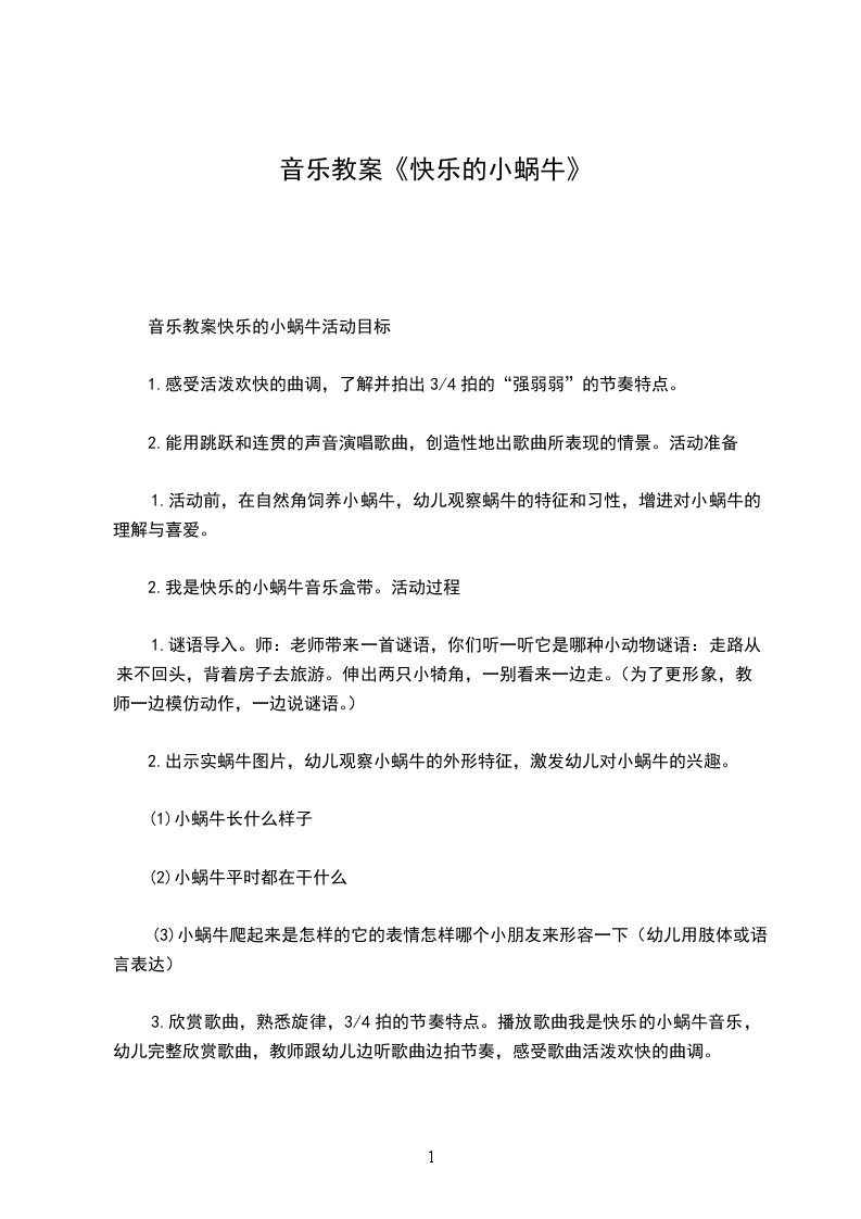 音乐教案快乐的小蜗牛活动目标