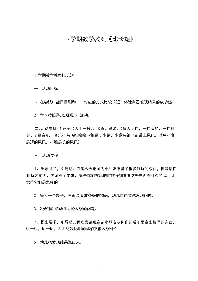1、在尝试中能用目测和一一对应的方式比较长短,体验自己发现结果的成功感。