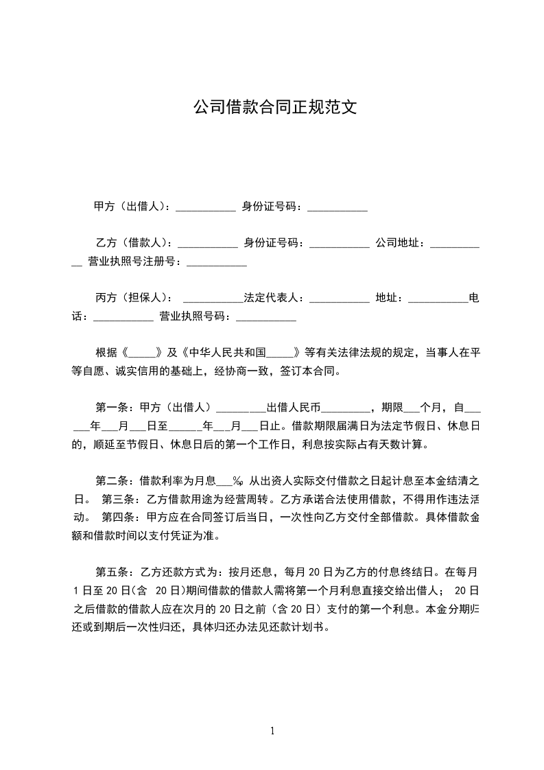 乙方(借款人):___________ 身份证号码:___________ 公司地址:___________ 营业执照号注册号:___________