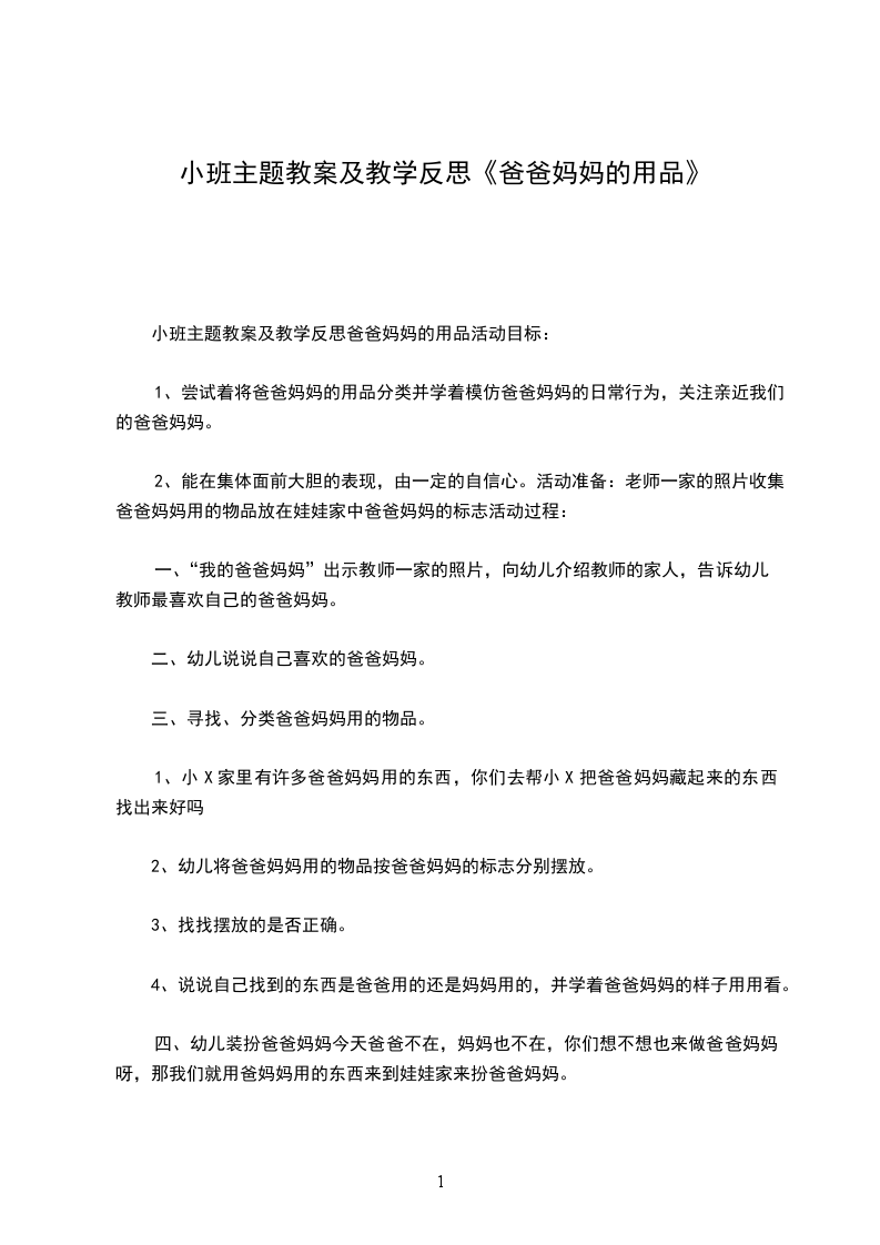 小班主题教案及教学反思爸爸妈妈的用品活动目标: