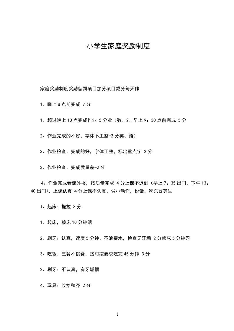 家庭奖励制度奖励惩罚项目加分项目减分每天作