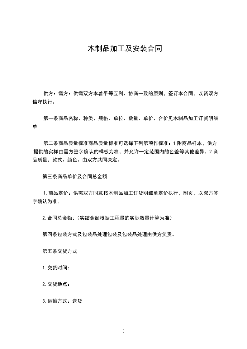 1.商品定价:供需双方同意按木制品加工订货明细单定价执行,附页,以双方签字确认为准。