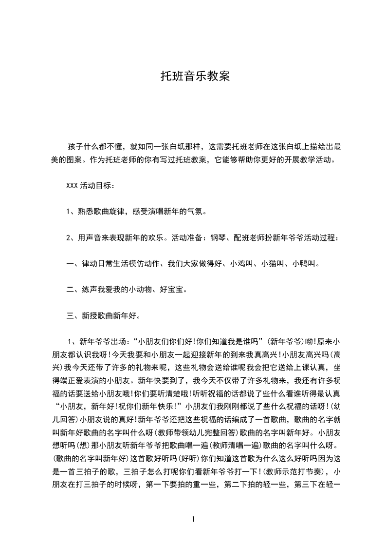 2、用声音来表现新年的欢乐。活动准备:钢琴、配班老师扮新年爷爷活动过程: