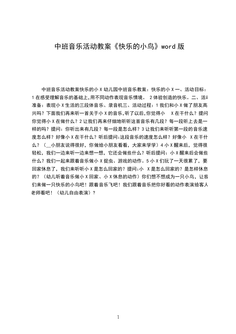 三、结束部分运动会结束了,我们一起回家吧!教师带领幼儿跟随舒缓音乐退场。活动延伸:与表演区相结合,跟随不同的音乐佩戴头饰进行表演,如两只小鸟等音乐活动。教学反思:在活动中,我为了避免孩子从头唱到尾,在解决难点四分音符与感情技巧处理部分,我采用了谈话的方法,让孩子稍微休息了一会,使活动能够动静结合,孩子们的表现基本上完成了我预设的目标。当然了,本次活动还有很多不足的地方,希望各位老师和专家多加指点。