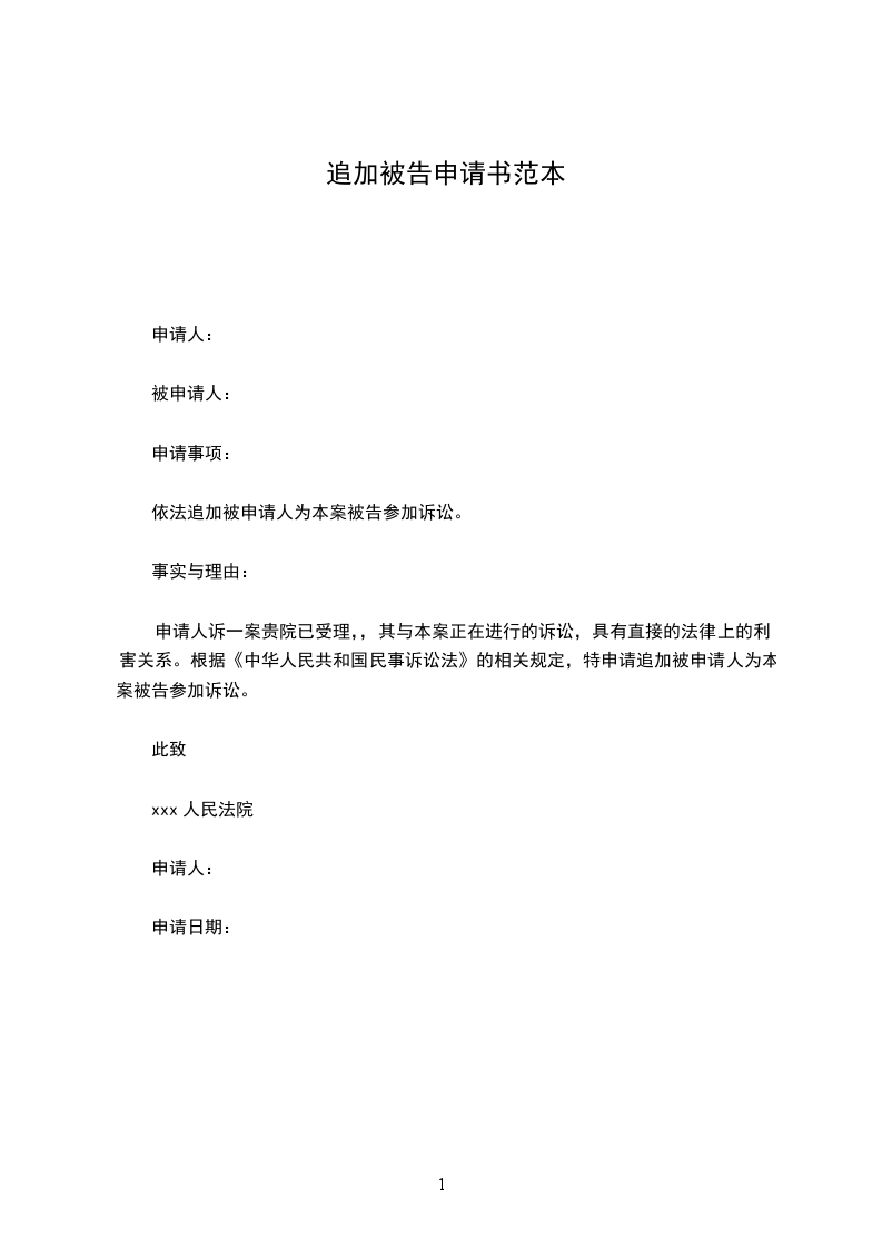 申请人诉一案贵院已受理,,其与本案正在进行的诉讼,具有直接的法律上的利害关系。根据《中华人民共和国民事诉讼法》的相关规定,特申请追加被申请人为本案被告参加诉讼。