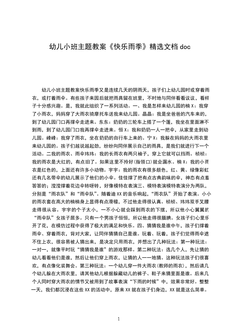 幼儿小班主题教案快乐雨季又是连续几天的阴雨天,孩子们上里,不时地与同伴看看议议,看样子十分感兴趣。于是,我就此组织了一系列活动。