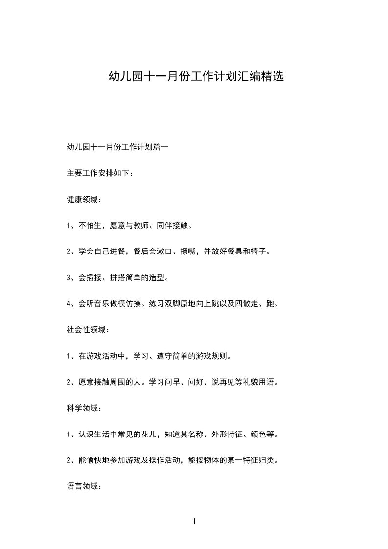 3.建议家长利用时间和孩子一起进行各种体育锻炼活动。其它:多关注普通幼儿的,与他们建立彼此信任的关系。与孩子一起迎接元旦节。幼儿园十月份工作计划幼儿园十月份工作计划