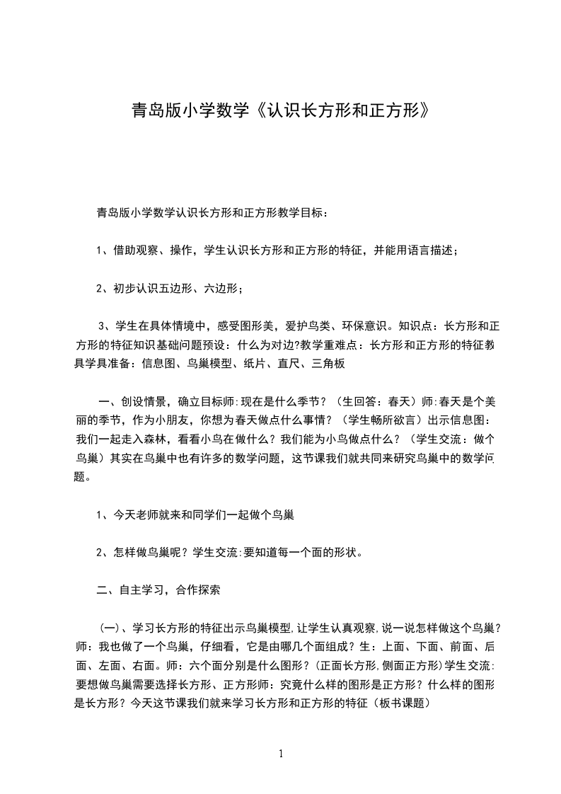 3、认识长方形,知道名称和基本特征,能区分长方形和正方形,了解它们的异同点。
