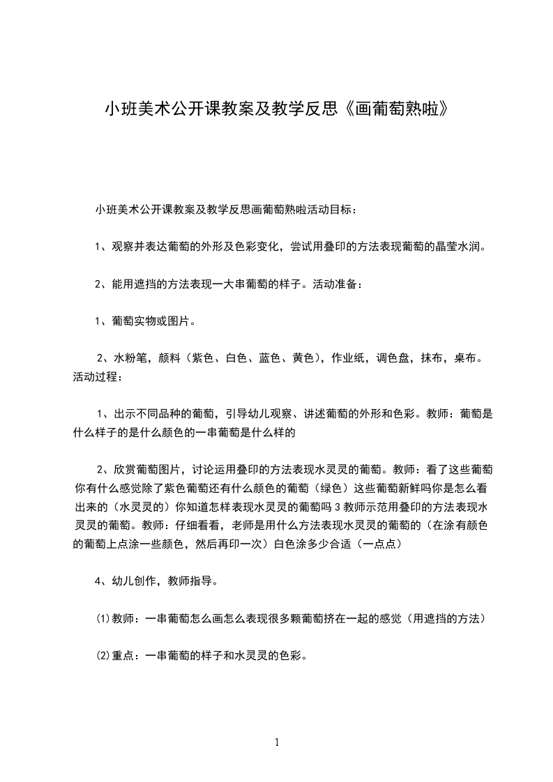 小班美术公开课教案及教学反思画葡萄熟啦活动目标: