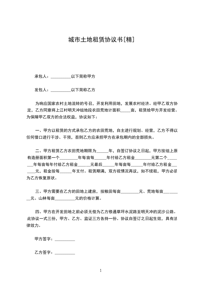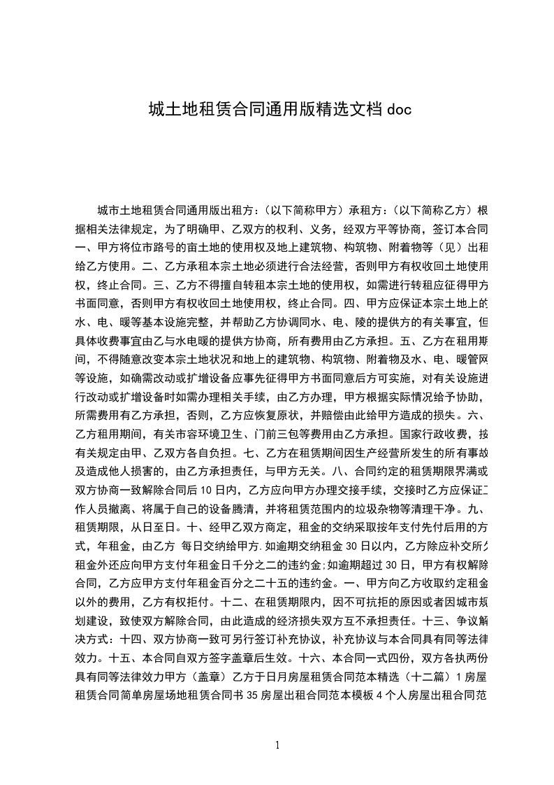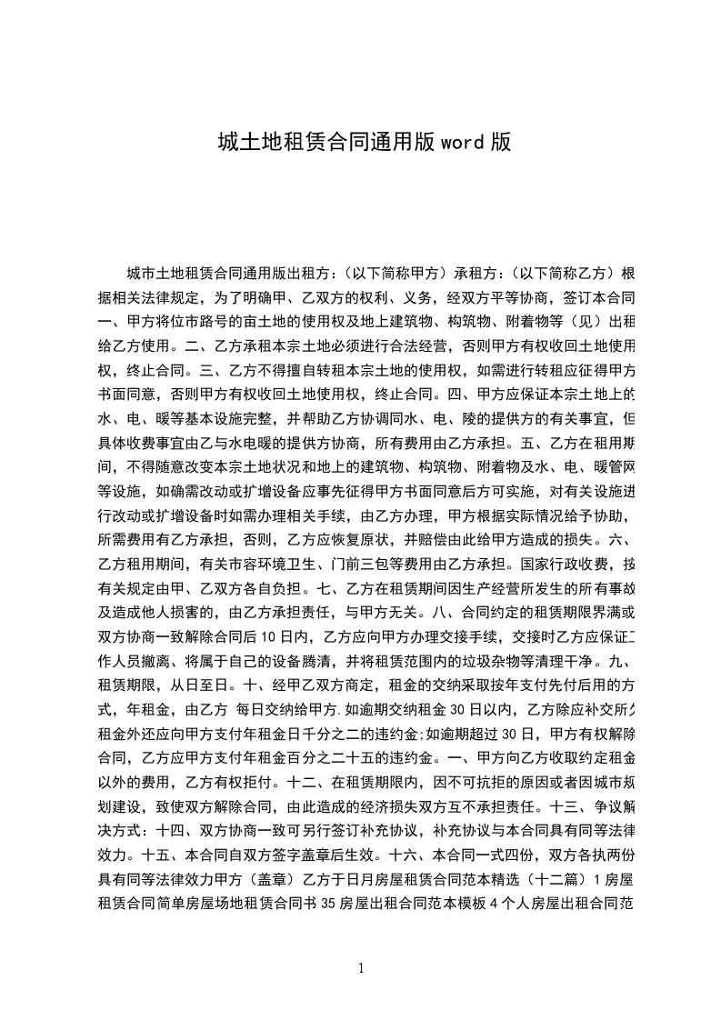 城市土地租赁合同通用版出租方:(以下简称甲方)承租方:(以下简称乙方)根据中华人民共和国合同法及相关法律规定,为了明确甲、乙双方的权利、义务,经双方平等协商,签订本合同。
