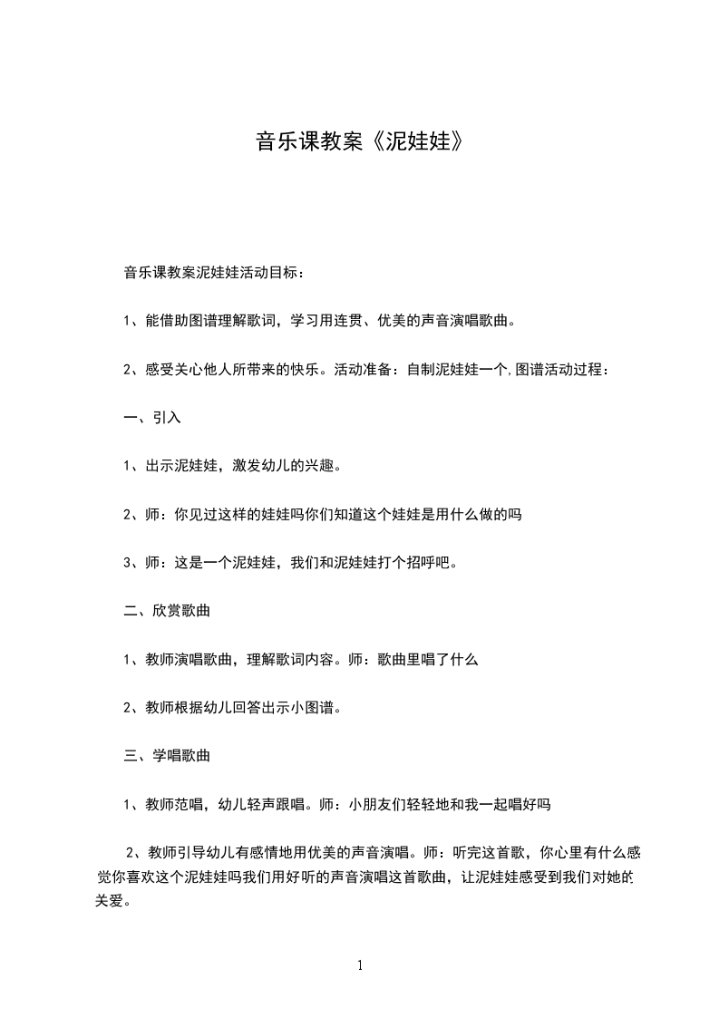 四、教师小结师:泥娃娃现在有人疼了,也有人爱了,真得很高兴,谢谢各位小朋友。活动反思:本次活动前,我先将原教案进行了修改,增加了图谱这一教学材料,从而帮助孩子理解和记忆歌词。在图谱设计时,我尽可能地使用简易的图片帮助幼儿理解,并运用了"1""""真""假"等一些明显的符号加以辅助。活动时,孩子们能被多样的图谱所吸引,正确地理解并用声音优美地歌唱,活动目标有效达成。但是在活动中我也发现了活动氛围并没有预期得好,如果我能在肢体动作、脸部表情等更加活跃一些,也许孩子们也能被我的情绪所感染,使本次音乐活动的氛围显得更加活跃欢乐一些。这是我下次要注意的地方。