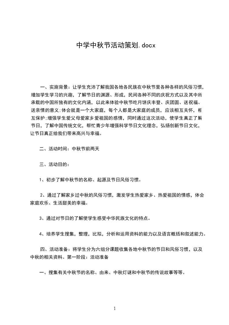 一、实施背景:让学生充沛了解我国各地各民族在中秋节里各种各样的风俗习惯,增加学生学习的兴趣,了解节日的渊源、形成,民间各种不同的庆祝方式以及其中所承载的中国所独有的文化内涵,以此来体验中秋节吃月饼庆丰登、庆团圆、送祝福、送亲情的意义;体会就是一个大家庭,每个人都是大家庭的成员,应该相互关怀,相互保护;增强学生爱父母爱家乡爱祖国的感情,同时通过这次活动,使学生真正了解节日,了解中国传统文化,帮忙青少年增强科学节日文化理念,弘扬创新节日文化,让节日真正给我们带来高兴与幸福。