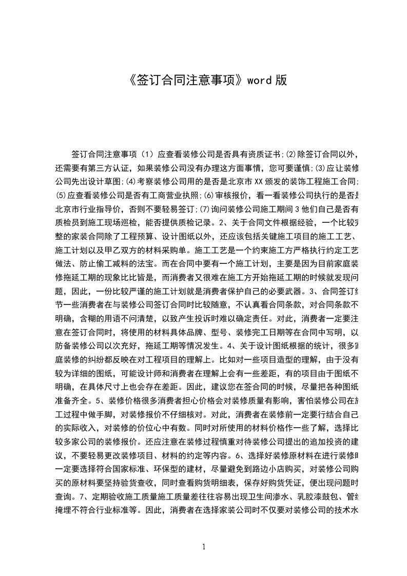 3、合同签订细节一些消费者在与装修公司签订合同时比较随意,不认真看合同条款,对合同条款不明确,含糊的用语不问清楚,以致于产生投诉时难以确定责任。对此,消费者一定要注意在签订合同时,将使用的材料具体品牌、型号、装修完工日期等在合同中写明,以防备装修公司以次充好,拖延工期等情况发生。