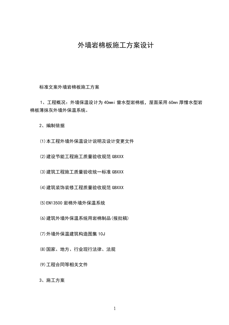 标准文案外墙岩棉板施工方案