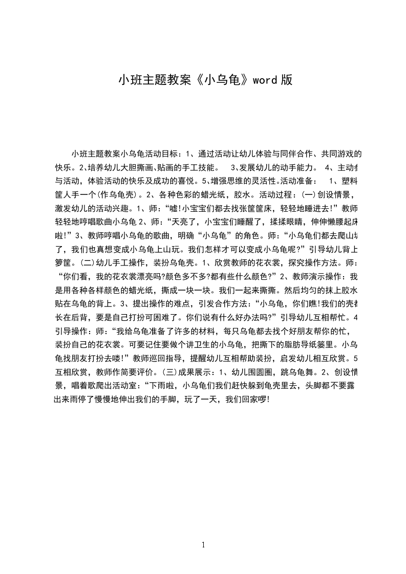 小班主题教案及教学反思聪明的乌龟活动目标: