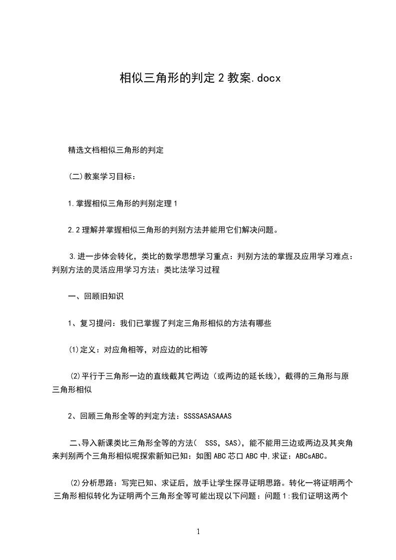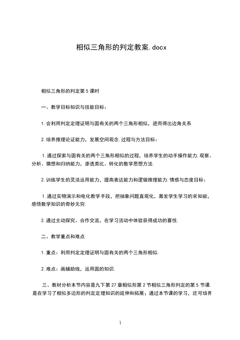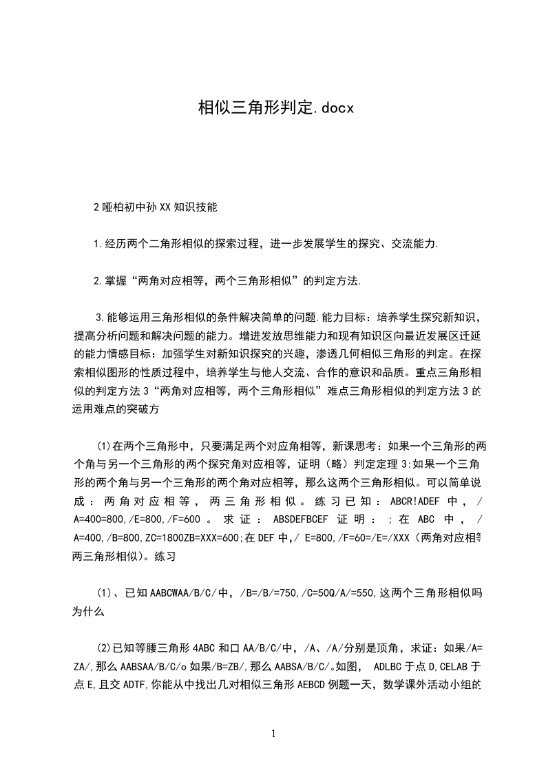 2.通过学习,体会几何证明的方法美。教学重点正确而灵活运用相似三角形的判定定理4(两角分别相等的两个三角形相似)教学难点