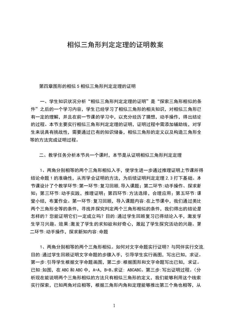 1.相似三角形的判定定理4的论证;