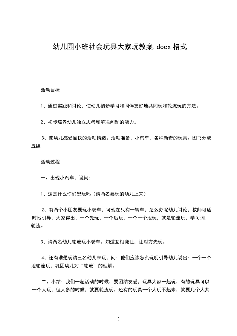 (4)老师想出了什么好办法,小X就愿意把玩具给我玩了呢(幼儿实践合作玩的方法)小结:当别人不愿意把新玩具借给你玩的时候,可以想出和他一起玩的方法,让大家玩得都开心。
