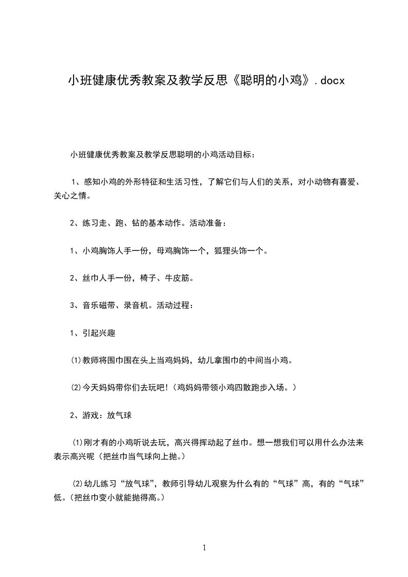 小班健康优秀教案及教学反思聪明的小鸡活动目标: