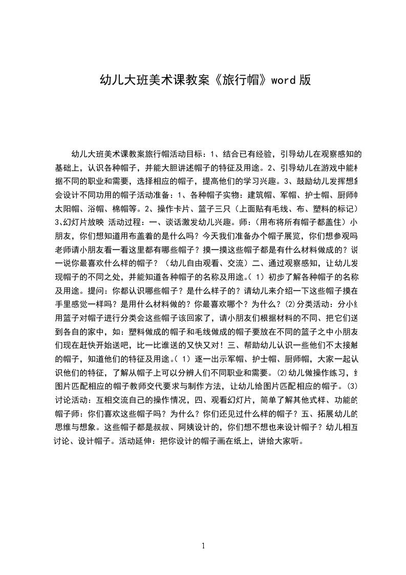 1、讲故事会变形的帽子,引起幼儿学习的兴趣。师:小朋友有一位神秘的来客,你们猜猜它是谁(帽子先生)帽子先生最想去旅行,但是它很害怕会被别人发现,你有什么办法吗