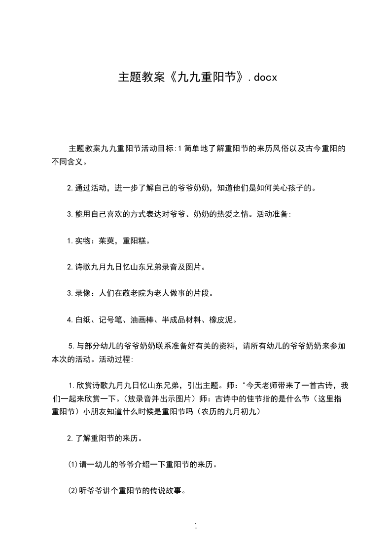 主题教案九九重阳节活动目标:1简单地了解重阳节的来历风俗以及古今重阳的不同含义。