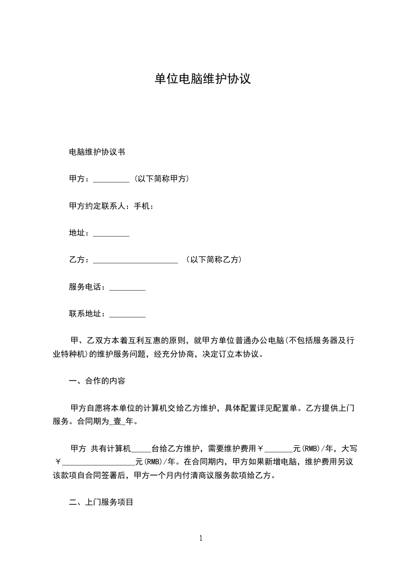 七、 本协议书一式_份,甲乙双方各执_份;本协议甲乙双方签字后生效。补充协议亦属于合同的一部分。甲方(盖章):_乙方(盖章):_法定代表人(签字):_法定代表人(签字):_担保人(签章):__年_月_日_年_月_日签订地点:_签订地点:_单位电脑出租协议单位电脑捐赠协议3捐赠单位名称:_电话:_法定代表人姓名:_职务:_经营范围及方式:_工商核准登记号:_开户银行:_账号:_受赠单位名称:_市慈善总会电话:_法定代表人姓名:_职务:_以上双方根据中华人民共和国公益捐赠法、中华人民共和国合同法有关规定,订立协议如下: