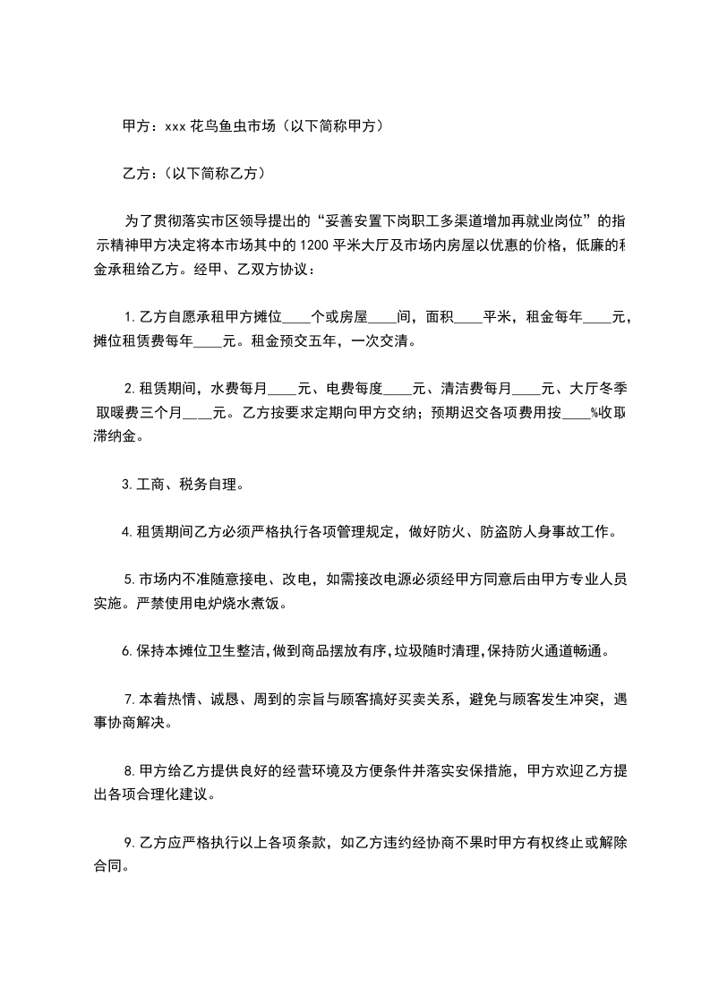 甲方:xxx花鸟鱼虫市场(以下简称甲方)