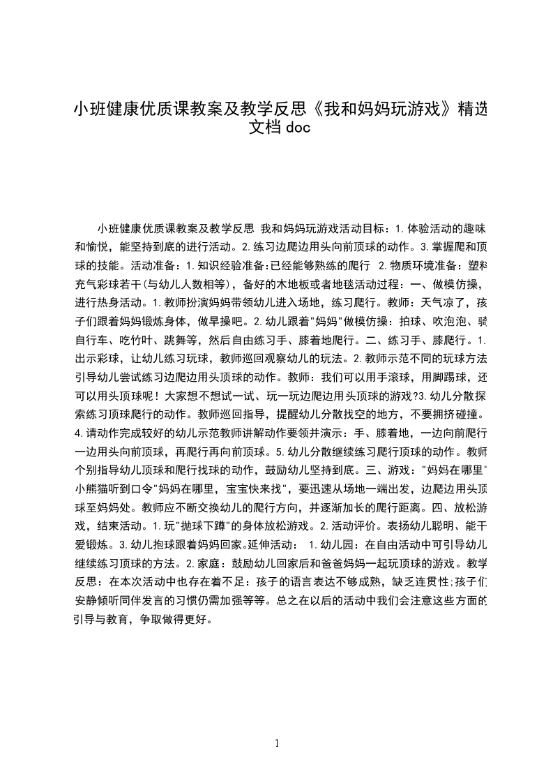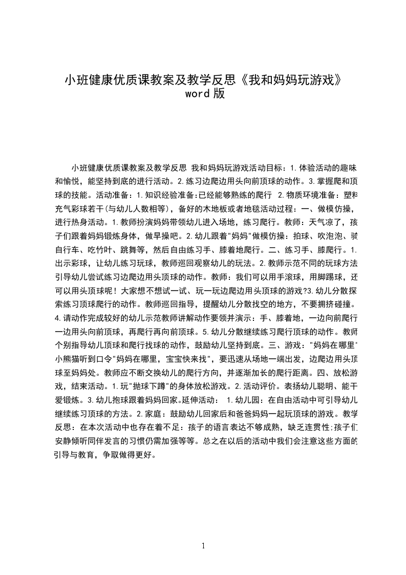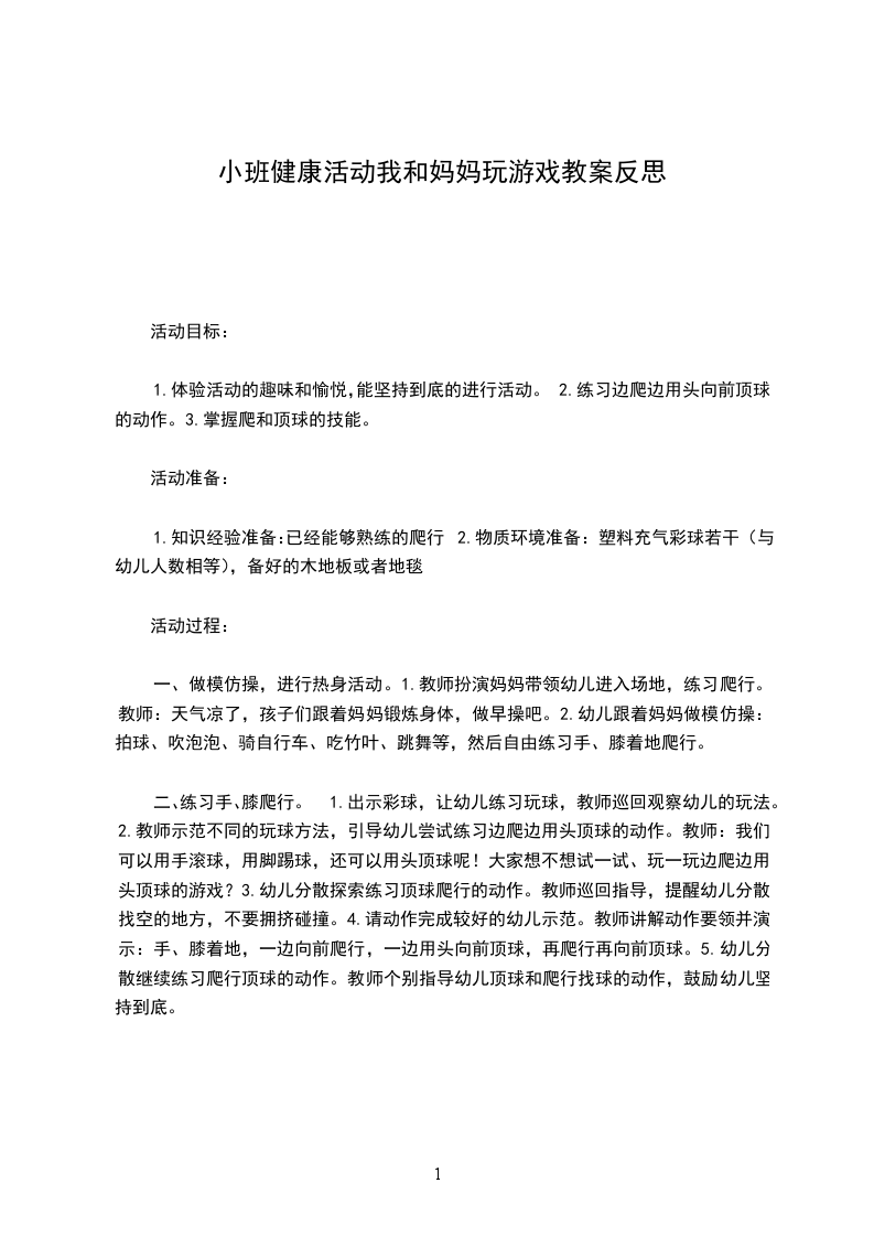 小班健康优质课教案及教学反思我和妈妈玩游戏活动目标: