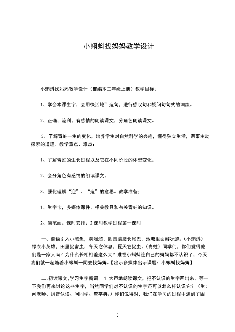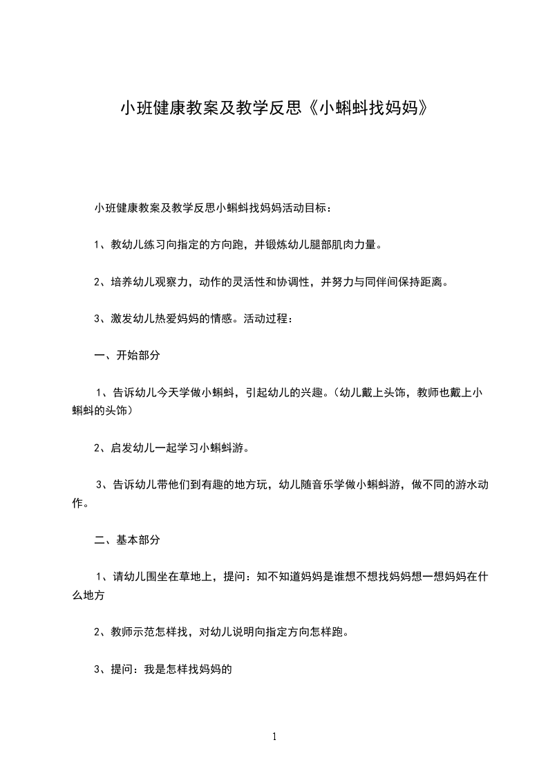 小班健康教案及教学反思小蝌蚪找妈妈活动目标: