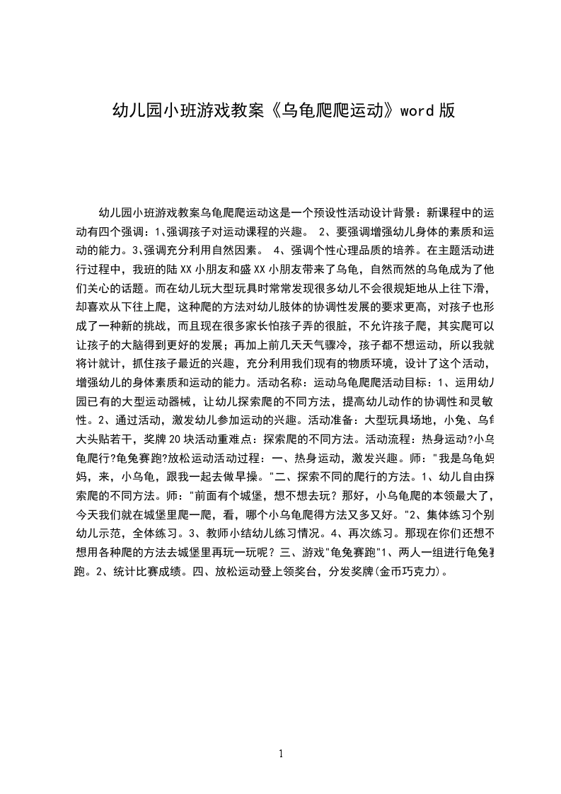 三、结束部分幼儿一起做放松运动结束游戏。教学反思:这节课通过幼儿模仿喜欢的动物-小乌龟练习不同方式的爬,其活动方式非常适合活波好动的小班幼儿学习。针对幼儿的年龄特点来设计这节课,让幼儿在体验模仿小乌龟爬行的乐趣的同时,锻炼和提高幼儿四肢的协调能力,并促进幼儿的大脑发育。活动过程中,结合游戏进行了活动练习,调动了幼儿的积极性,让幼儿在学习中体验到很多快乐。