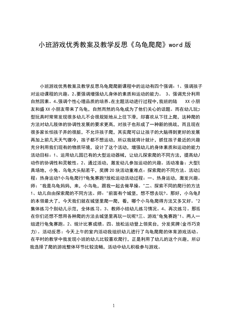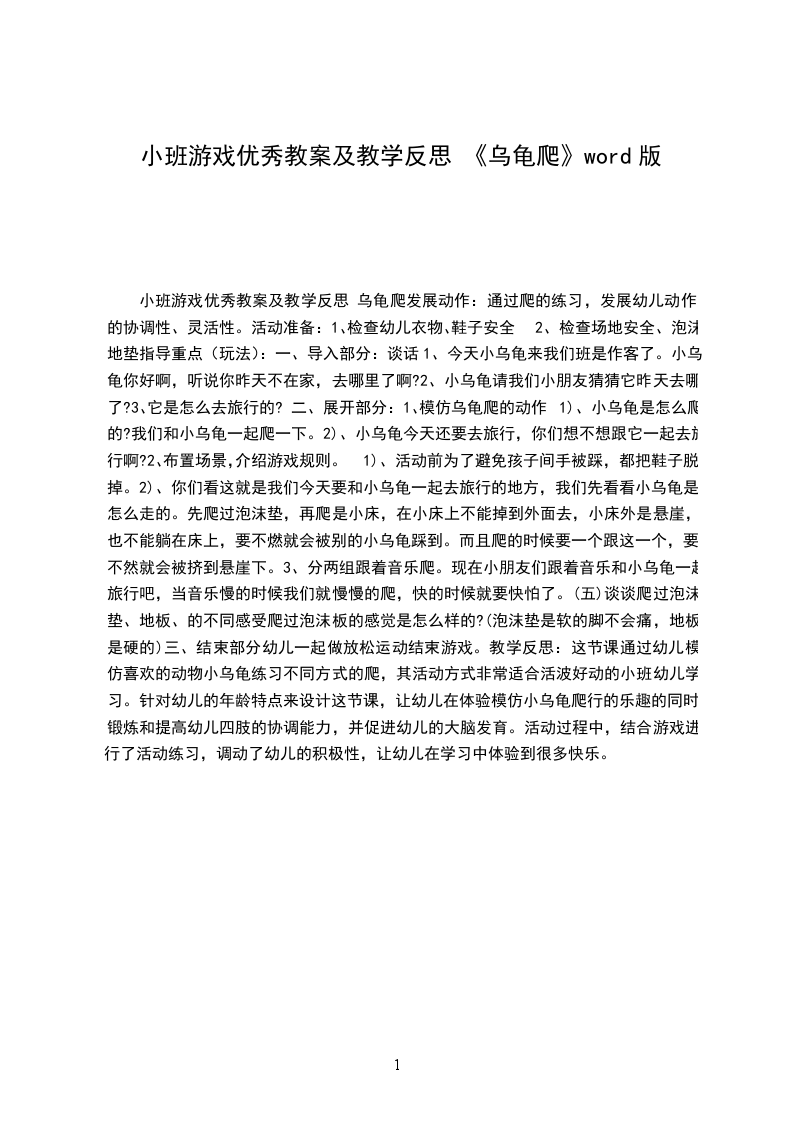 小班游戏优秀教案及教学反思乌龟爬发展动作:通过爬的练习,发展幼儿动作的协调性、灵活性。活动准备: