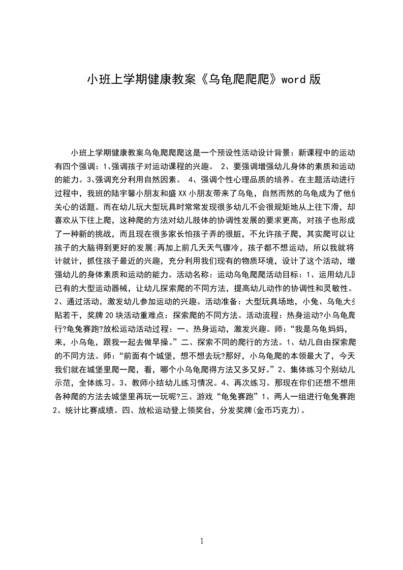 1、模仿乌龟爬的动作1)、小乌龟是怎么爬的我们和小乌龟一起爬一下。2)、小乌龟今天还要去旅行,你们想不想跟它一起去旅行啊