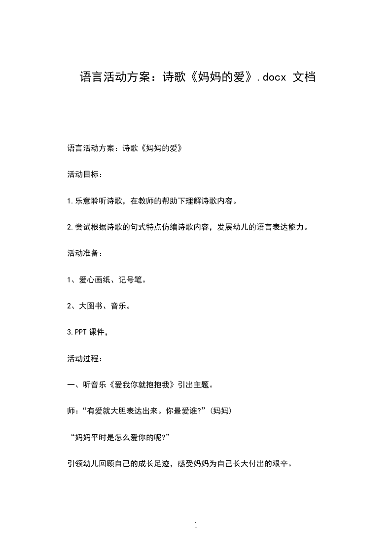 1、理解诗歌内容,并学习有感情的朗诵,感受其中所表达的深厚感情。