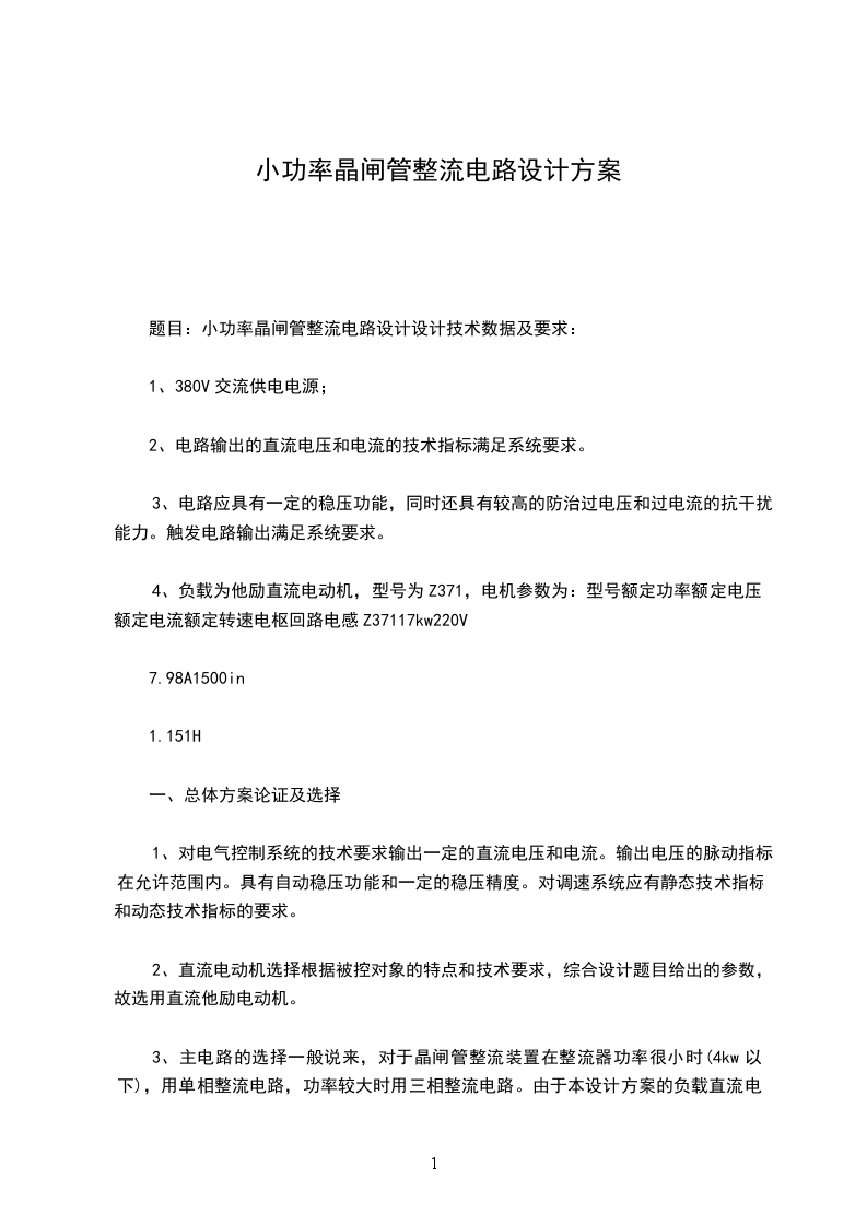 题目:小功率晶闸管整流电路设计设计技术数据及要求: