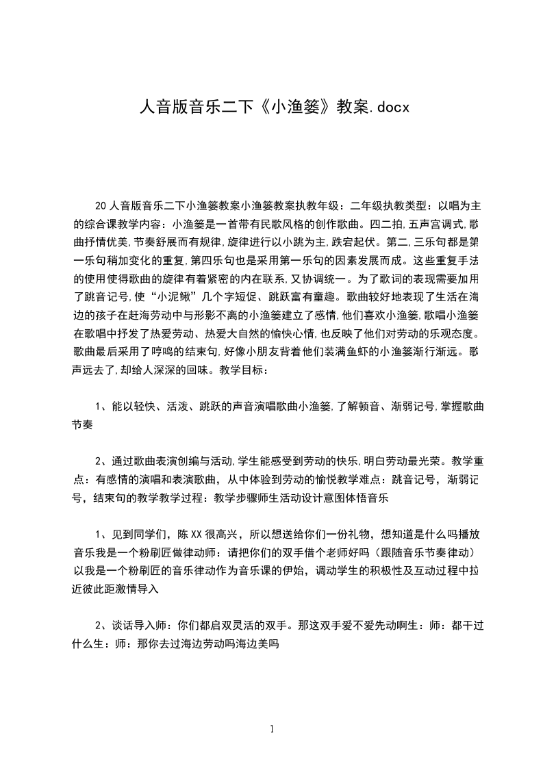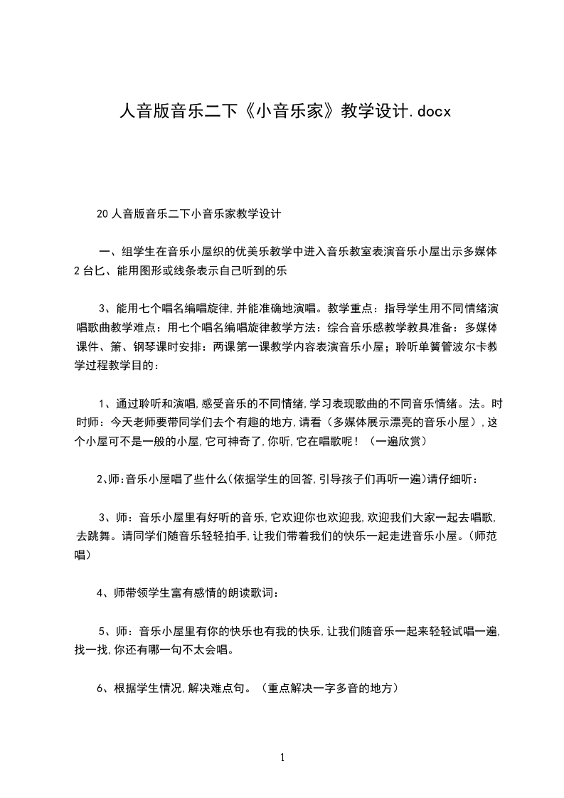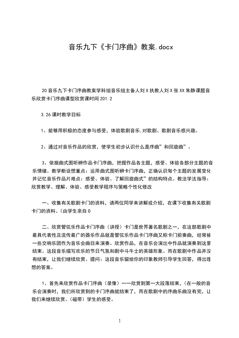 1、通过歌曲的教唱,引导学生用绵延的气息,优美抒情的歌声抒发情感。2教学重难点:2教学过程:、了解大型音乐作品:歌剧,并能够理解歌剧