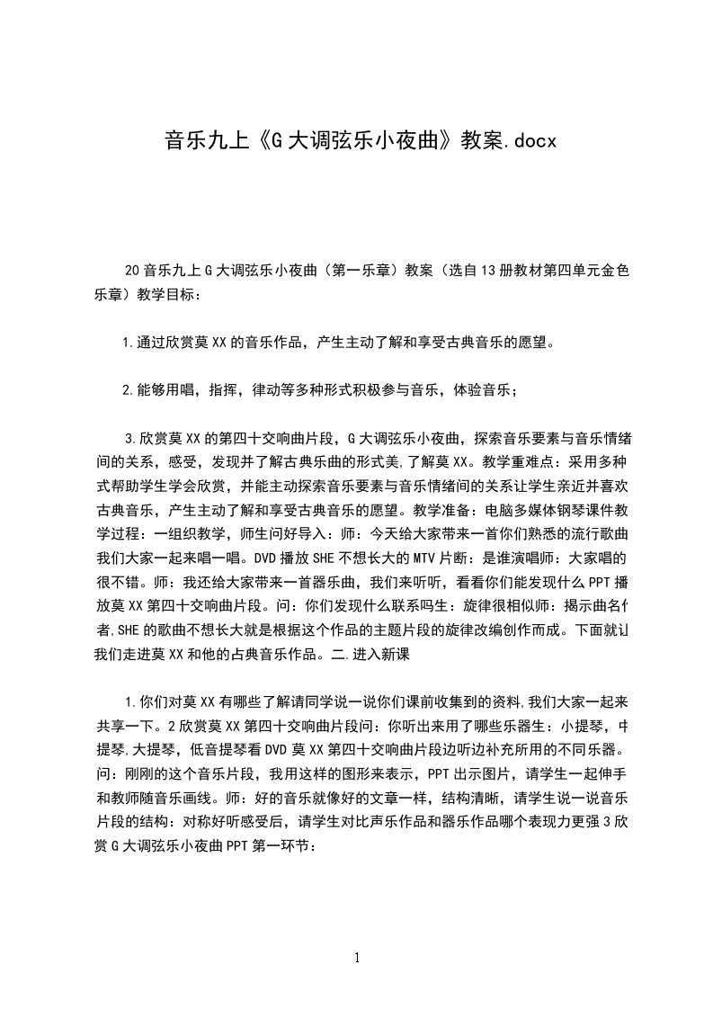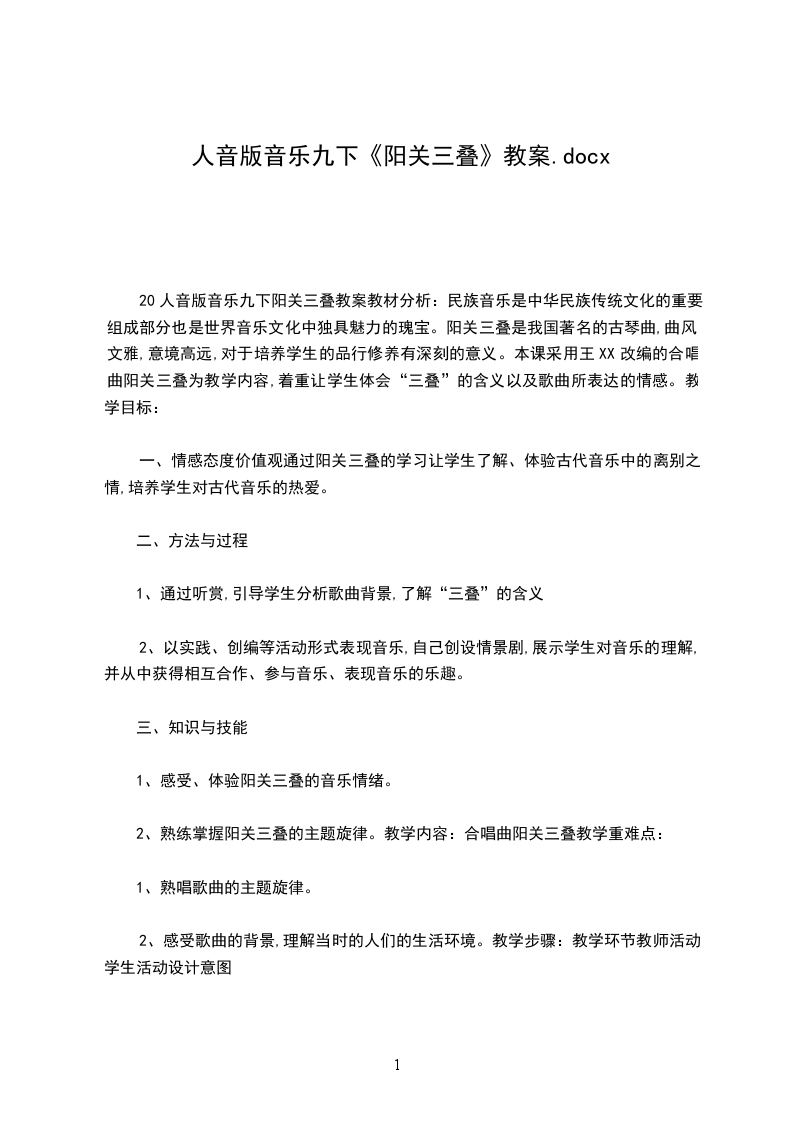 20音乐九下小草教案授课年级:初中三年级课型:综合课课时:一课时教具:钢琴、录音机、多媒体、黑板教学内容: