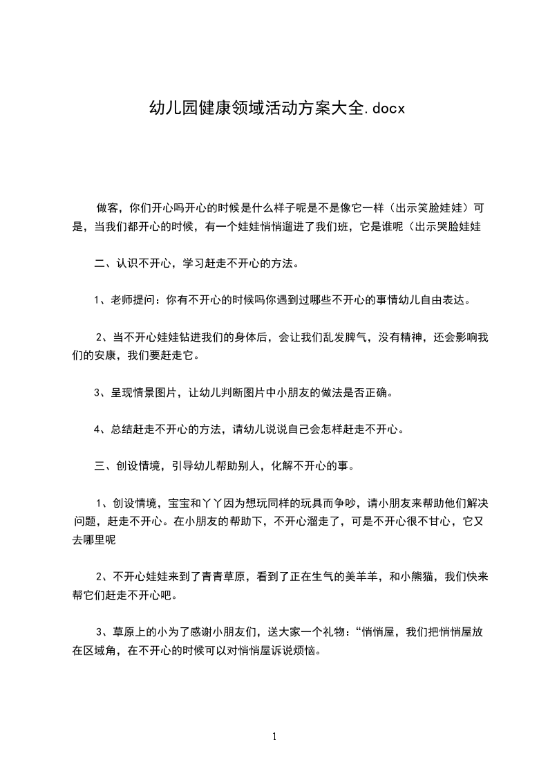 四、完毕活动。伴随音乐快乐小天使,在欢快的中,鼓励每位幼儿做传递快乐的小天使,给更多的人带去快乐。幼儿园安康领域活动方案5活动目的: