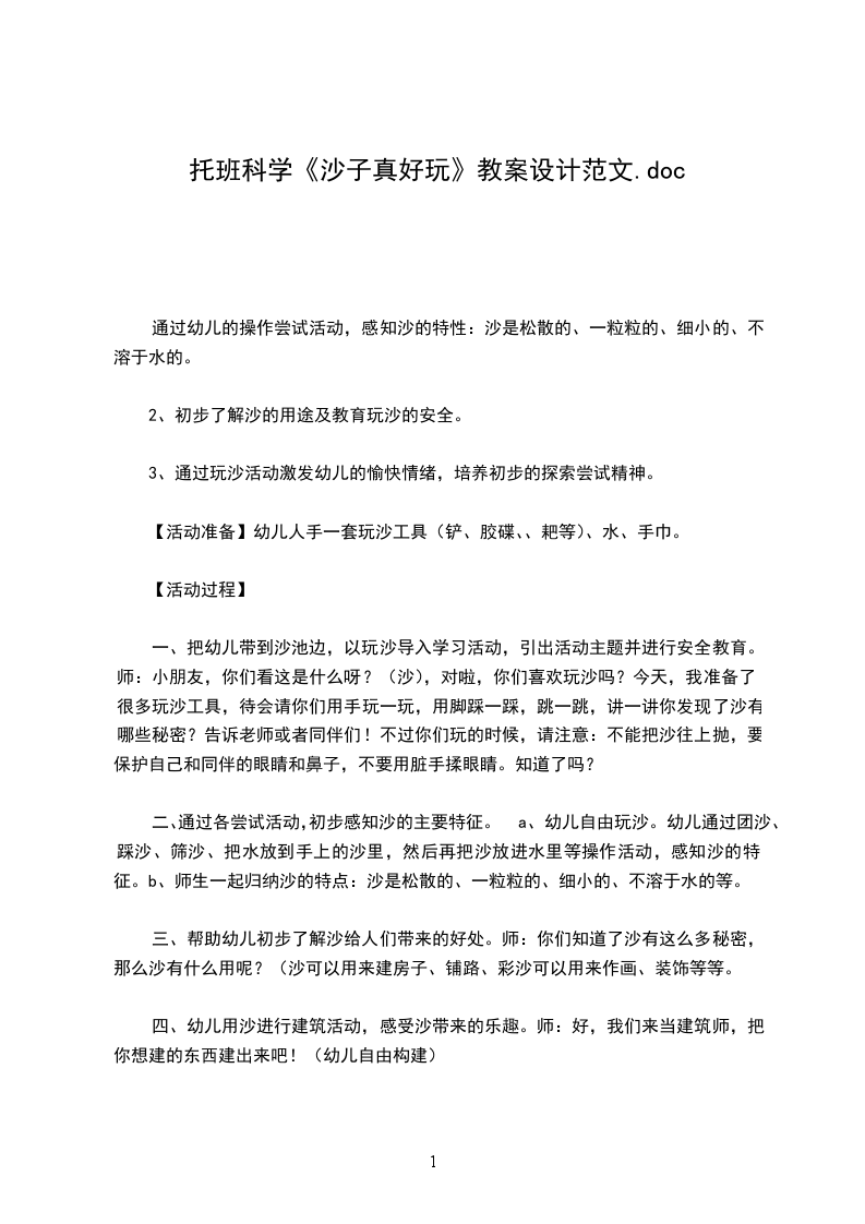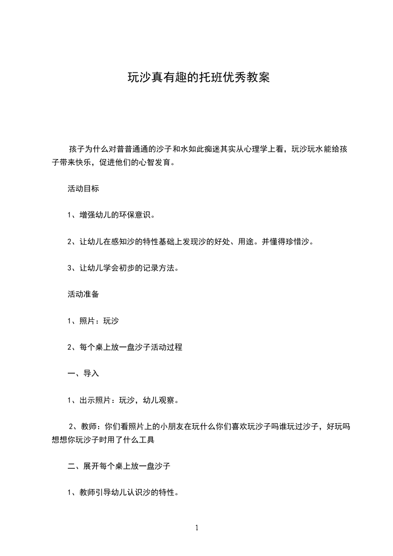 2、让幼儿在感知沙的特性基础上发现沙的好处、用途。并懂得珍惜沙。