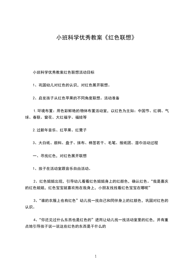 小班科学优秀教案红色联想活动目标