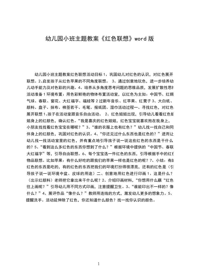 1、巩固幼儿对红色的认识,对红色展开联想。