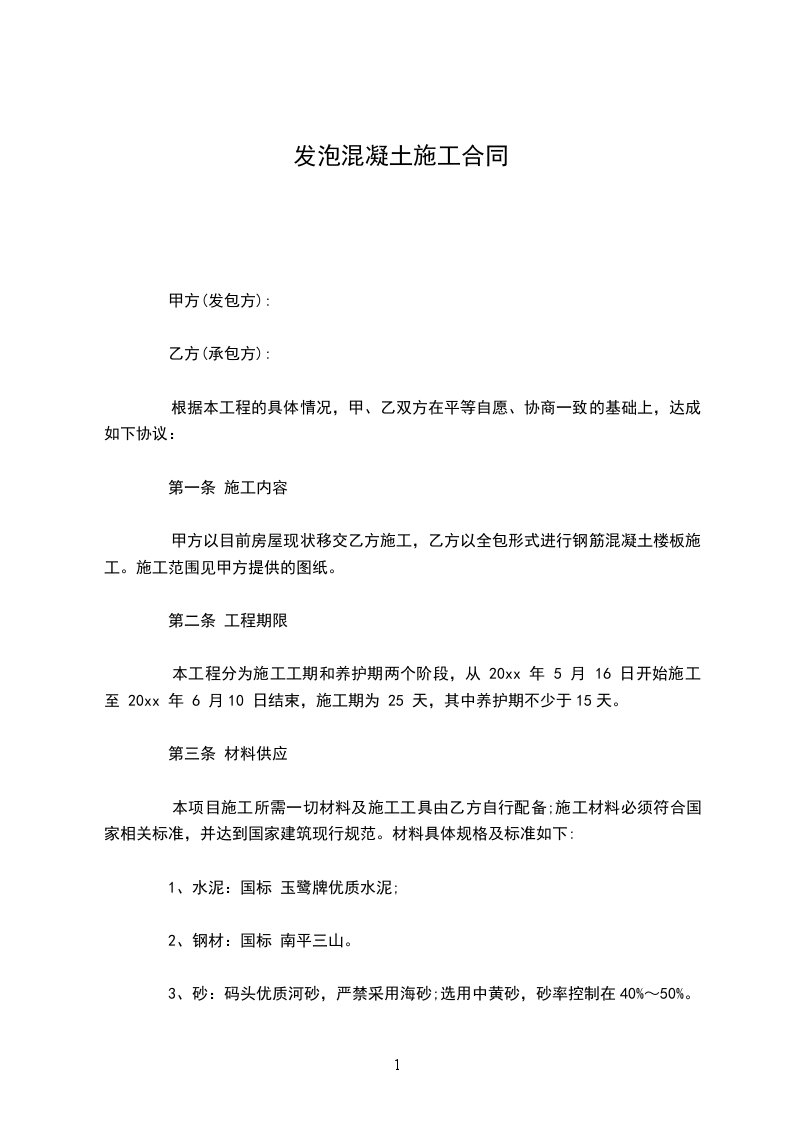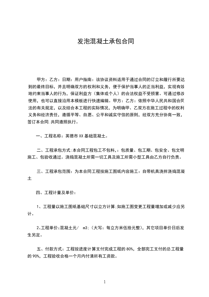 2、工程单价:混凝土元/m3;(大写:每立方米伍拾元整),其它项目单价日后发生另定。
